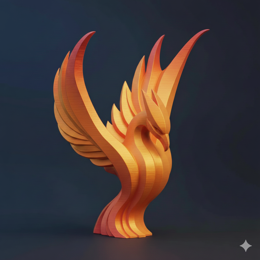 Sculpture de phénix majestueux aux ailes déployées. Un symbole de renaissance et de force au design aérien et moderne.